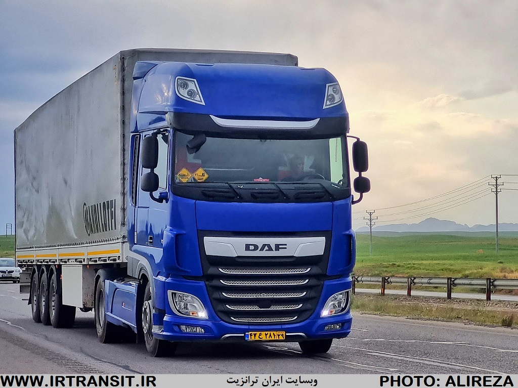 کشنده داف ایکس اف یورو6 سقف بلند سوپر اسپیس کابین آبی رنگ ایران 29 با تریلر چادری لطفی